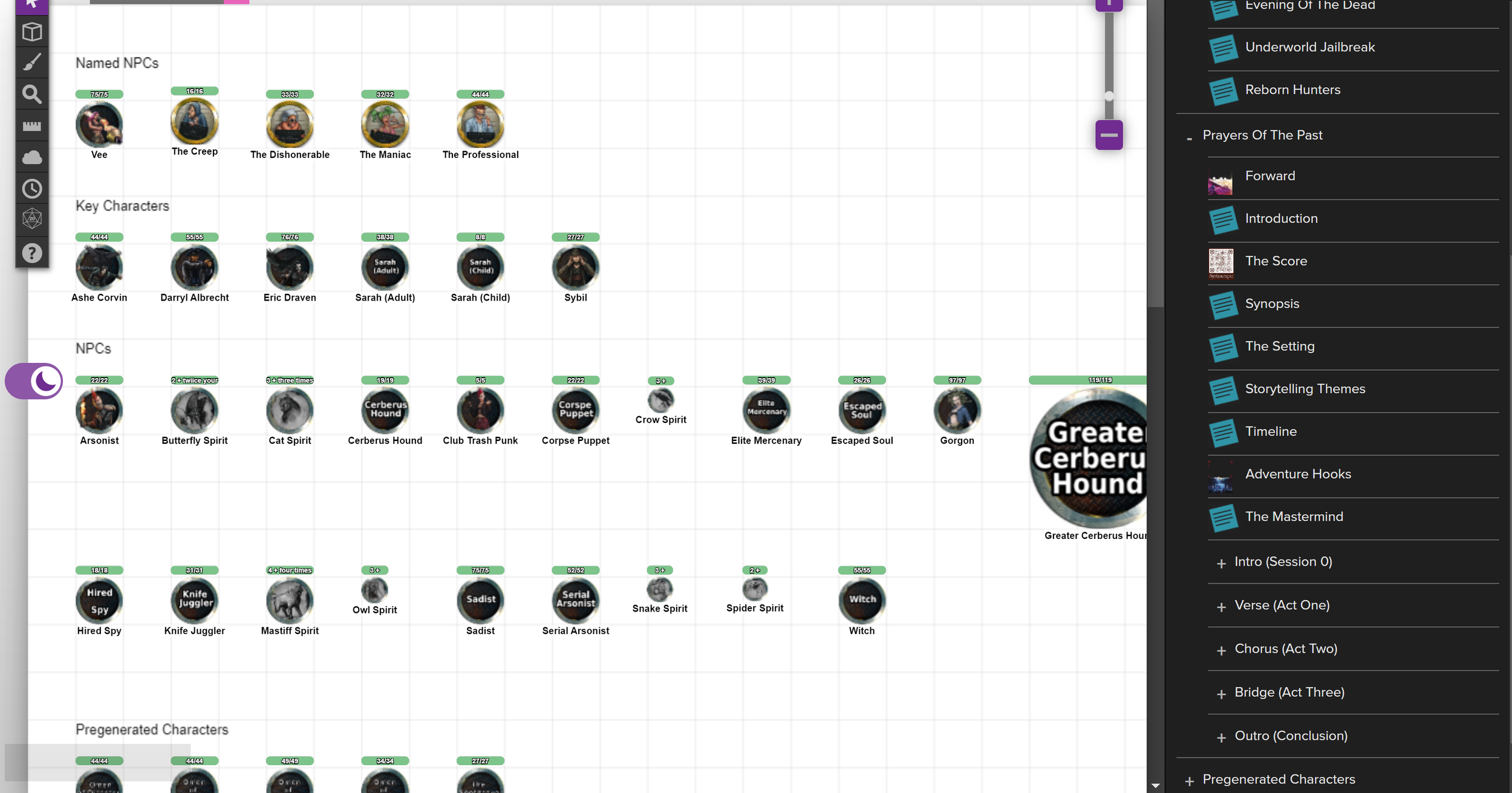 As a final stage, our work is raked into Roll20, an online TTRPG Space. These implementations are coupled with required marketing materials to craft a downloadable package for players and our Employees.